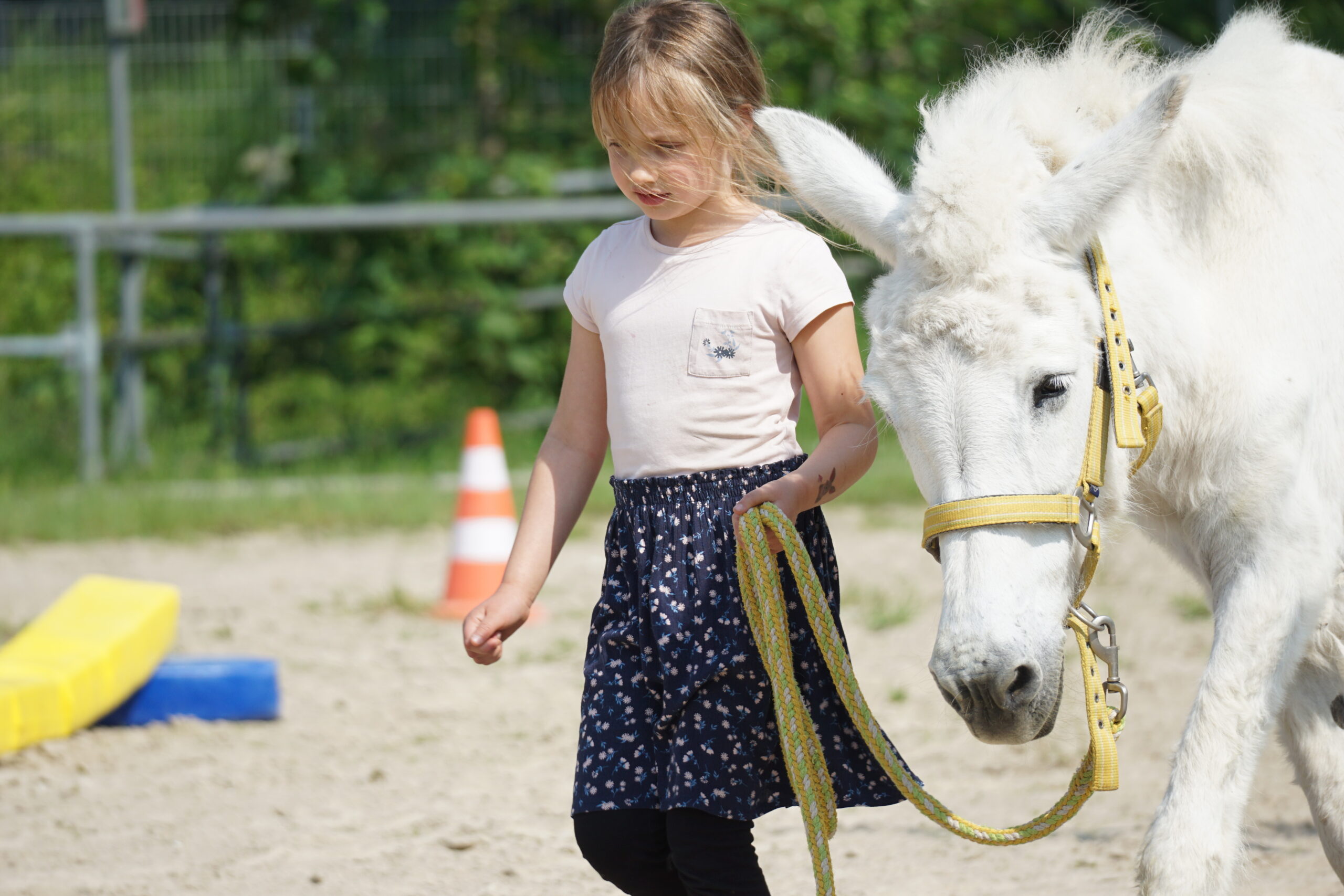 - Tiertraining mit den Hauseseln, Poitou-Eseln und Pferden (Bewegung und Auslastung, Training von Spaziergängen, …)